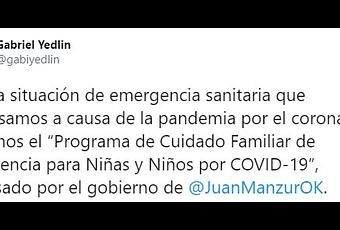 “Ante la situación de emergencia sanitaria que atravesamos a causa de la pandemia por el coronavirus, lanzamos el Programa de Cuidado Familiar de Emergencia para Niñas y Niños por Covid-19“, anunció este lunes por la tarde el ministro de Desarrollo Social, Gabriel Yedlin, en su cuenta de Twitter. En simultáneo, se publicó la convocatoria en la página web oficial del ministerio.