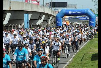 En la sexta edición, la clásica bicicleteada del Banco Ciudad reunió a unos 4000 participantes que se sumaron al encuentro que busca difundir el uso de la bici como medio para fomentar el deporte, la vida saludable y el transporte ecológico. Condujo Julián Weich y un equipo de profesores de educación física que guiaron y alentaron a los participantes en el ex Circuito KDT . La recorrida abarcó 10 km, atravesando la Autopista Illia, las avenidas del Libertador, Figueroa Alcorta, Sarmiento y Rafael Obligado para finalizar nuevamente en el punto de inicio.Con esta iniciativa, organizada conjuntamente con la Secretaría de Transporte de la Ciudad de Buenos Aires, el Banco Ciudad celebra 50 mil bicicletas financiadas en 50 cuotas sin interés con las tarjetas de la entidad, que ayudan a estimular la actividad deportiva, la recreación y la movilidad sustentable.Este beneficio permite comprar, con las tarjetas de crédito de la entidad, en más de 80 bicicleterías adheridas ( https://www.bancociudad.com.ar/beneficios/ ), tanto las bicicletas como todo el equipamiento de seguridad y reglamentario para el uso en la vía pública.