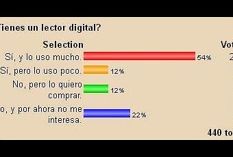 He hablado tantas veces del e-book (ventajas e inconvenientes, piratería, más piratería, estrategias de ventas en digital) que me cansa dedicarle una nueva entrada para comentar la encuesta de enero; no quiero aburrirme ni aburriros. No obstante, decidí plantear esta pregunta porque ya la hice hace tiempo, en 2010 y 2011, y mi objetivo era comparar los resultados. Tal y como era de esperar, el número de usuarios de e-reader ha aumentado: las encuestas de 2011 y 2014, que tienen un total de votos similar (435 y 440, respectivamente) muestran un aumento del 33% al 54% en la primera opción («Sí, tengo un lector y lo uso mucho») y, en cambio, un descenso del 38% al 22% en la última («No, no lo tengo ni me interesa por ahora»). Creo que los datos reflejan la realidad de la calle: cada vez hay más lectores que leen en formato electrónico y, los que aún no lo hacemos, tenemos más interés que antes por probarlo. Aun así, el porcentaje de usuarios sigue alejado del 100% a pesar de realizar la encuesta entre personas que leen mucho, como es el caso de quienes navegamos por la blogosfera.Me gustaría extenderme más, pero, dado que todavía no puedo hablar de mi experiencia en primera persona, me parece que lo más interesante es que construyamos una reflexión entre todos con vuestros comentarios. Para empezar, os animo a responder estas preguntas (no todas; las que queráis):