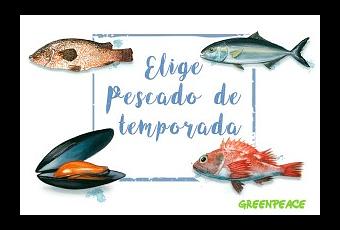 Greenpeace recomienda los pescados de temporada, y que se hayan capturado con artes pesqueras sostenibles. Comentan que el pescado de temporada aumenta las probabilidades de que este haya sido capturado en caladeros próximos y con métodos sostenibles. Y ello es destacado, ya que el 48% de las poblaciones de peces en aguas europeas del Atlántico y más del 90% en el Mediterráneo están sobreexplotadas, para minimizar el impacto hay que optar por los productos de proximidad.