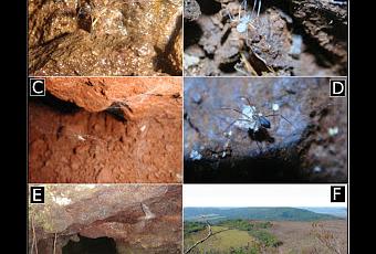 Figure 21. A Ochyrocera varys sp. n., predating a Diptera B Ochyrocera atlachnacha sp. n., on the web C Ochyrocera misspider sp. n., couple in the web D Ochyrocera varys sp. n., carrying the egg sac E Entrance of an iron cave F Canga vegetation on rocky outcrop. (Extraído del trabajo anteriormente mencionado DOI: https://doi.org/10.3897/zookeys.726.19778.figure21)Además tenemos la suerte que ZOOKEYS es abierta on-line por lo que todos podemos leer y descargar el artículo. Os dejamos el enlace al artículo desde la página de la publicación: