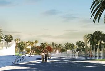 El primer tramo es mayor en superficie albergando por tanto la mayor parte de las funciones. En él ubicamos zonas de ocio y restauración, el anfiteatro, una amplia zona para actividades deportivas para mayores, un área infantil, amplias zonas ajardinadas, zonas de paseo y descanso semicubiertas.