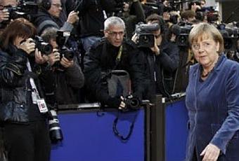 Ya sé que la escena se presta a creer que estamos ante la alfombra roja de Cannes o Hollywood, con su glamuroso pase de estrellas y el fogonazo impenitente de los fotógrafos, inmortalizando el paseíllo de directores, actrices, actores y demás protagonistas del movie system. A no ser por el hecho evidente de conocer la identidad de la señora de la foto, el ojo sería fácilmente engañado por la pirotecnia mediática que rodea a este tipo de actos políticos. No es para menos; se congrega en Bruselas la plana mayor de gobernantes europeos, incluido Cameron (para asegurarse de que no le dañan la libra). Al parecer se reúnen por enésima vez (y las que les quedan) para dirimir el futuro del euro, es decir, nuestro bolsillo. Su reto es tomar decisiones rápidas acerca de la viabilidad de seguir asumiendo la deuda de los miembros más débiles y si Berlusconi se dejará aconsejar por la canciller, sin sacar de su boca las procaces declaraciones que preceden su fama de necio.