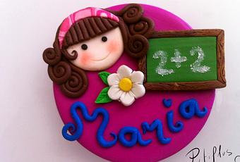 Este me lo hizo mi hermana para la profe de mi sobri, me envió la foto del babero que usan, para que lo hiciera igual. ¡Le gusto tanto que le puso un imán para ponerlo en la nevera y no se estropeara con los peques!