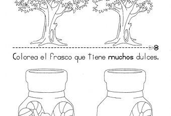 - Colorea el frasco que tiene muchos dulces.