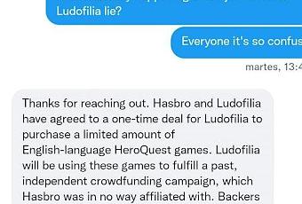 En resumidas cuentas:Si,hay realmente un acuerdo entre GameZone/Ludofilia y Hasbro pero ojo, por el que los primeros han adquirido unas cajas en inglés del Heroquest de Hasbro,para usarlas en el cambio que había prometido, en el que Hasbro ni pincha ni corta. Los mecenas podrían escoger entonces entre el Heroquest de Hasbro (En inglés os recuerdo) o el Tseu-Quest de GameZone/Ludofilia,que es como lo han llamado ahora.