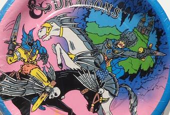 Como ya he he contado en anteriores ocasiones, TSR Inc. llegó a sacar una cantidad de merchandise relacionado con Dungeons & Dragons que solo se puede definir como "enorme" en cuanto a cantidad y variedad de productos. Prácticamente podemos pensar en un objeto y TSR Inc., mediante contratos y licencias de explotación para empresas exteriores, lo saco. No solo juguetes, camisetas, frisbees, tazas, pins, material escolar de todo tipo (Especialmente para manualidades como un set de pirograbado para madera!), libros de colorear y un largo etc que se vendían como líneas propias mas que como elementos de promoción.
