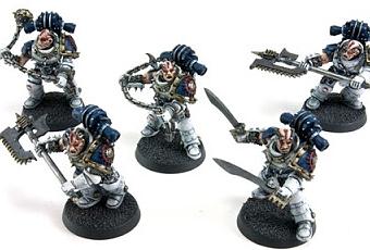 El newsletter de esta semana de Forge World nos trae un nuevo cargamento de material para la Herejía de Horus.Todo es material que sale en pre-venta y se pone a la venta oficial el día 1 de marzo.Lo mas llamativo de lo que ha salido esta semana es esta escuadra,los Rampagers,la élite gladiatorial de los Devoradores de Mundos en la Gran Cruzada.Una escuadra de 5 marines armados con diferentes armas especiales de combate cuerpo a cuerpo exclusivas de su legión por 32 libras.Bueno, viendo que son figuras que ya vienen armadas y demás, no me parece caro en exceso aunque si me llama la atención el gran parecido que tienen con las viejas figuras de Guardaespaldas de Fabius Bilis.