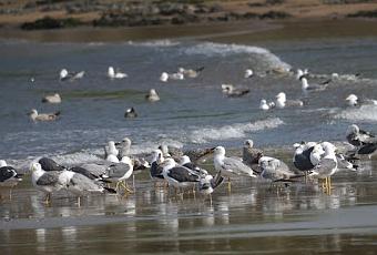 Con código 66, fue anillada en Moerdijk, Noord_Brabant, ya en Holanda, como pollo, el 19-06-2008. Cuenta con varias observaciones en Holanda, salvo una de otoño en Francia y esta de Bañugues. Yo diría que una de las cosas más notables de esta gaviota es que tiene más aspecto de intermedius que de fuscus, por su estructura corporal, el tono oscuro de las partes superiores (basta comparar con la otra gaviota del fondo) y las pintas blancas de las primarias, muy pequeñas.