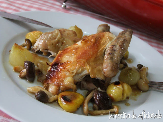 Seguimos con la propuesta de Carmelo de La cocina de Aficionado que ha preparado un Picantón con cebollitas setas y castañas que está pidiendo que lo hagamos.