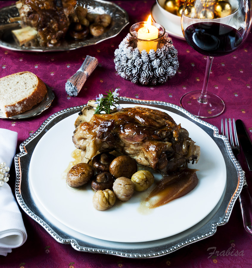Isabel de La cocina de Frabisa ha preparado un impresionante codillo asado con hongos y castañas, con su preciosa presentación tan característica. Me encanta este plato.