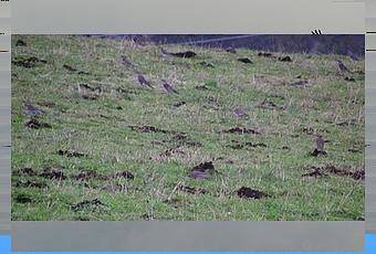 Pero también hay un gran número de zorzales comunes alimentándose en los campos. Este zorzal es más solitario que las otras dos especies y no tiende a formar bandos, aunque las aves se agrupan en sitios favorables. El zorzal común es residente en Asturias, aunque muchos de los que podemos observar estos días proceden de otros lugares y retornarán cuando mejore el tiempo.