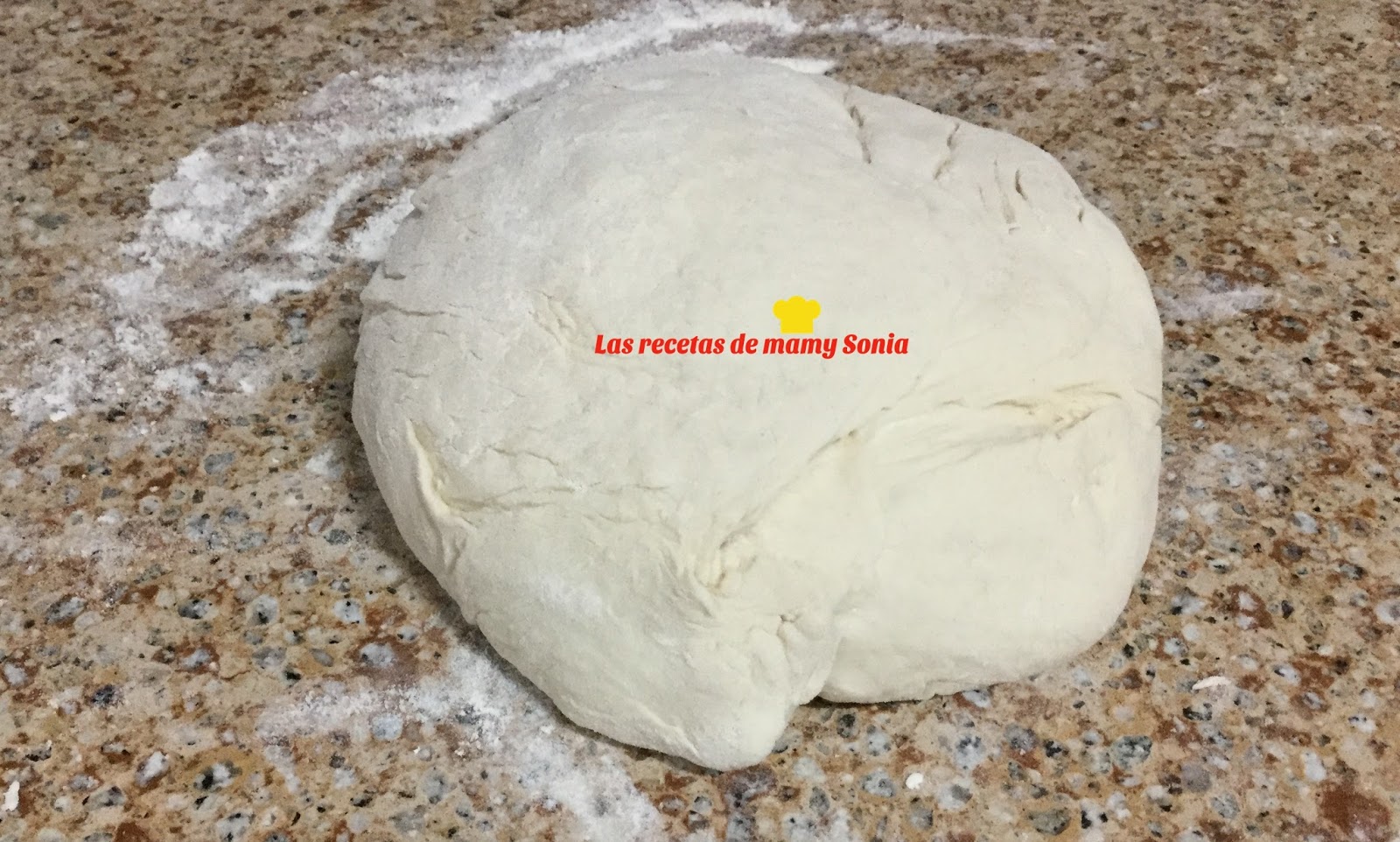 Poner la masa en la mesa de trabajo enharinada amasar un poco y hacer una bolabien lisa.