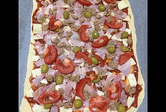 200 grs. de harina 1 cucharada sopera de aceite2 cucharaditas de sal 125 ml. de cerveza ( sustituye a la levadura ) nosotros la usamos sin alcohol