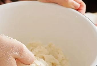 Hacer rodar la masa con ambas manos hasta formar un cilindro, luego dividir la masa en 6 partes iguales (70gr. aproximadamente).