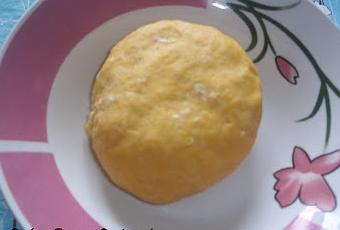 Hacemos un volcán con la harina y el sal, y en el interior echamos el huevo, vamos incorporando la harina empomada poco a poco mientras la amasamos con el huevo. Amasamos todo hasta que no coja más harina.