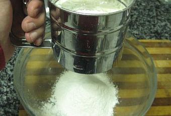 - Tamizamos 250 gr. de harina de trigo P-10 en un bol.