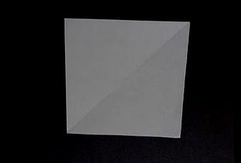 Cuando ya tengamos el triángulo listo, dividimos éste en 4 partes. Esto se hace plegando la punta superior hasta la base de éste, y los lados los plegamos sobre los límites que se marcaron, como si estuviéramos cerrando la figura.