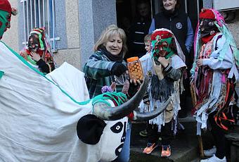 Al llegar a cada casa, anunciándose con el ruido de los cencerros, siempre se repite el mismo ritual. Cuando sale el dueño o dueña de la casa el cortejo pregunta: ¿Cantamos o marchamos? A lo que el dueño o dueña de la casa siempre responde: ¡Cantad, hijos, cantad!