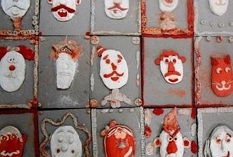 Una presentación con los trabajos, en los cuales se notan diversas expresiones, caras de animales, y personajes.