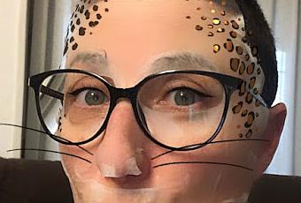 2. Pliégalos y coloca la tela en la cara para que los recortes quepan en los ojos, la boca y la nariz. La película protectora blanca tiene que ser reemplazada