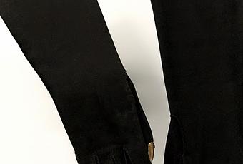 Documento/Tipología: Guantes de nocheDiseñador: Elsa SchiaparelliMaterial: Terciopelo de becerro, los apliques metálicos para las uñas son de oro, costura cosida. Datación: 1936.Localización: Palais Galliera (París, Francia).