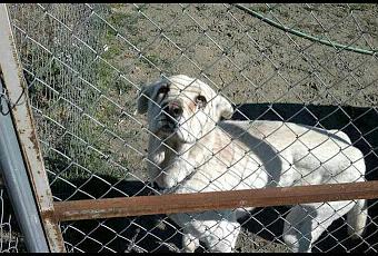 Por la crisis, el dueño no tiene que darle de comer y esta pobre mastina se encuentra en estas condiciones, es mastina y no parece de lo delgada que está.