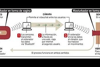 Ambos consoladores son emisores de impulsos y receptores de estímulos, de modo que se establece una comunicación, digamos erótica, entre ambos usuarios. A través de una videoconferencia, entonces, empieza la fiesta. Los sensores recogen los roces en el exterior de los masturbadores y los transmiten a la pareja sexual.