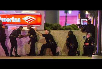 El tiroteo se desató en la noche de este jueves, en el centro de Dallas, cuando dos francotiradores posicionados en dos garajes de aparcamiento, abrieron fuego aprovechando una protesta pacífica por el abuso policial que dejó al menos dos afroamericanos muertos: Alton Sterling y Philando Castile, que fueron abatidos por agentes de la Policía.