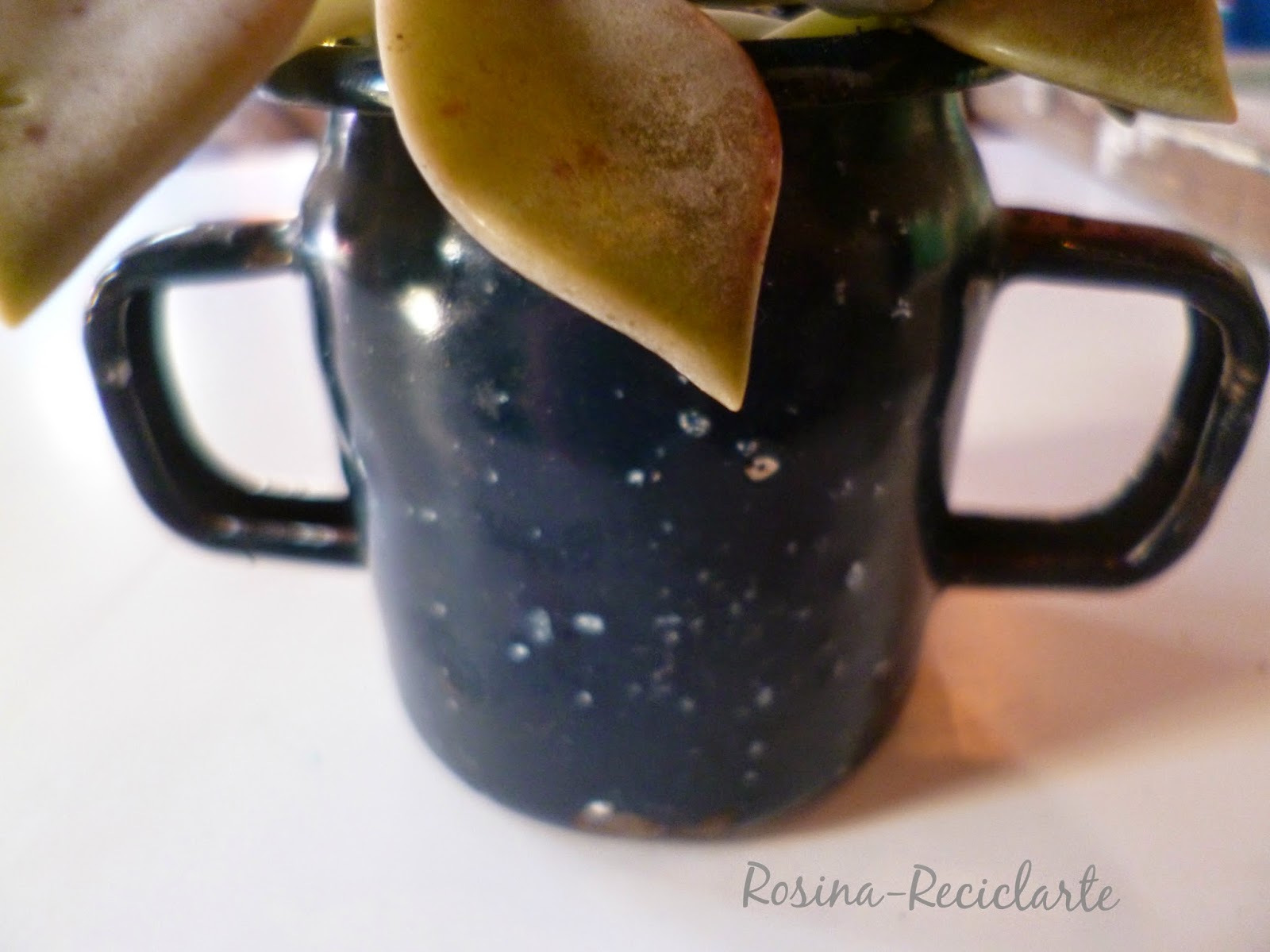 4 o 5 cucharadas de tierra fértil, unos pedacitos de carbón abajo para que absorban la humedad y 5 minutos después un mate-maceta lindísimo para lucir junto a mis otras macetas poco convencionales.