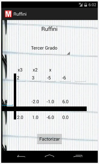 La aplicación está dividida en tres secciones principales en las que se puede estructurar la asignatura:• ÁLGEBRA, cuenta con ejercicios para resolver como: