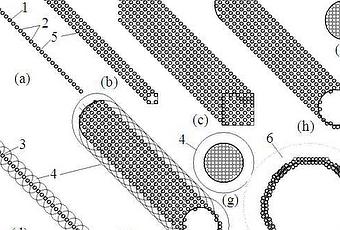 f) Sección de un tubo multicapa rodeado de una nube de electrones(6)