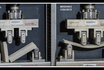 Por supuesto, para que un puente disipe la energía y vuelva a estar operativo, los materiales circundantes también han de poder manejar las tensiones y esfuerzos soportados. Se ha desarrollado un hormigón de ingeniería para trabajar junto con las SMA, llamado compuesto cementoso de ingeniería (ECC, Engineered Cementitious Composite). Este «hormigón flexible» es un material a base de cemento similar al hormigón, pero que incorpora fibras de alcohol polivinílico en lugar de árido grueso. La sustitución del árido por fibras le da al ECC una capacidad de deformación a la tracción seis veces mayor que la del hormigón.