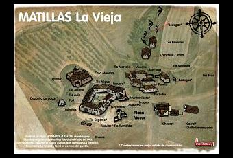 Matillas la Vieja, situado en un alto a 1, 5 kms del pueblo actual, se componía de 14 viviendas, plaza, iglesia, bodegas excavadas en la tierra y corrales (hoy solo queda en pie el ábside de la iglesia y la torre). La subida al pueblo y un paseo por sur calles derruidas es un ejercicio de nostalgia, no exento de belleza. Desde aquí bonitas vistas sobre el valle del Henares.