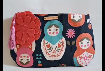 El estampado es de matrioskas y lleva una flor de fieltro. En el interior hay un maxi bolsillo.
