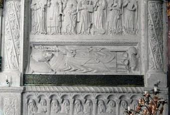 La tumba del obispo Hugues sigue el modelo del sepulcro del Papa Sixto IV, recurriendo a la representación de las Artes Liberales como muestra de su cultura humanística y su interés por las ciencias. La disposición vertical recuerda al mausoleo de Ramón Llull en Palma.