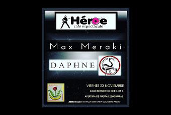 Este viernes en el Héroe Café Espectáculo de Madrid podremos disfrutar de dos propuestas en directo en el centro de la ciudad con sabor a rock and roll.Max Meraki y Daphne nos presentarán sus canciones en directo este viernes en el centro de Madrid.
