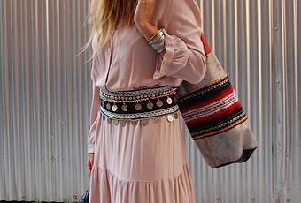 Lo he combinado con cinturón étnico , negro con monedas antiguas también de Pequeña Moma , que le da mucho rollo al vestido.