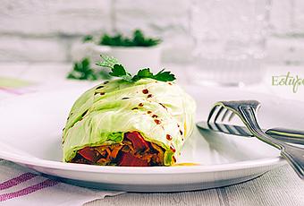 - Mientras, lavamos también las hojas de col (es preferible cortarles el tronco ya que en caso contrario nos parecerá demasiado duro y no nos será agradable en boca.)