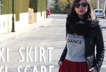 Este post estaba preparado para el fin de semana, pero de pronto me sentí inspirada e improvisé contándoos un poco de mí en un día tan especial como el 'día internacional de la mujer' y agradezco vuestros comentarios y la gran acogida que ha tenido! y...¡Por fin el sol hizo su estelar aparición y nos honró con su presencia! y para celebrarlo escogí una maxi falda y una maxi bufanda... (Ese día me dio por el maxi sí) y como en la moda el contraste siempre es acierto pues lo combiné con top corto y una biker cortita también. La verdad es que no se por qué no llevo faldas largas más a menudo, ya que siempre, cuando veo las fotos después, me encanta el resultado (Como este look tambien con falda larga, uno de mis favoritos del pasado verano) ¿qué os parece? ¿Sois de faldas largas? ¡Feliz Lunes!