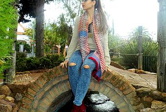 Ya sabéis que me encantan los jeans y mientras más rotos mejor! Por eso, he combinado el jersey con unos jeans elásticos y rajados en el muslo y las rodillas.