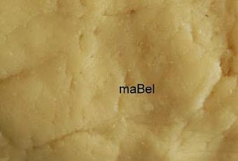 ahora, aprieta los grumos, sin amasar, solamente hay que unir como para que se peguen entre si. Si amasas demasiado, soltaá el aceite y quedarán manchas en el mazapán.Nota, si ves que queda muy pegajoso, entonces le agregas un poco mas de azúcar glas. Si por el contrario te queda muy seco, entonces usa un poco mas de clara.