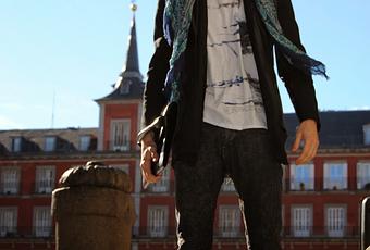 Respecto a la camiseta por su tipo de estampado le añadí el fular con los colores similares y fuertes para dar un resultado mas rompedor con todo el conjunto en si y demás prendas.
