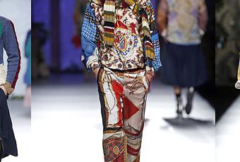 Hanníbal Laguna: “Barock & Roll“. Fusión de dos estilos: barroquismo y “look roquero”:volúmenes muy pronunciados o materiales que se ensalzan con bordados, encaje o aplicaciones de “paillettes”. Los detalles “rock & roll” son estampados de estrellas, unos pantalones pitillo y siluetas años 50.