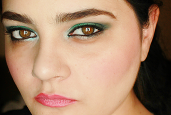 Lista de productosCara: Corrector Effacernes de Lancome, Hello Flawless! de Benefit, rubor Peach 'n Pink de MAC.Ojos: Eye Candy Eyeshadow Helper de Lime Crime, sombras verdes de la paleta de BH Cosmetics, Lumi de Sugarpill, Bone de Detrivore Cosmetics, máscara Lash Enamel Volume Glamour de Majolica Majorca, delineador Blackest Black de Maybelline.Labios: Athena gel lipstick de Morgana Cryptoria.