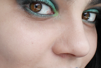 Ojos: Primer Eyeshadow Primer de Lime Crime, sombra Bone de Detrivore, azules y turquesas de la paleta Blue had at at hello de Wet n' Wild, verdes de la paleta Acid de Sleek, Lumi de Sugarpill.