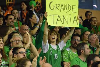 Tania Pérez es un grito al vacío, a la grada y a sus compañeras. "¡Es que lo vive tan de verdad...! Hay pocas deportistas de élite que siempre estén al pie del cañón como ella", destaca la entrevistada. Ha llegado el momento de preguntarle por la ya famosa pancarta. —Llegué a verla sola en la grada del Multiusos Sánchez Paraíso. ¿Te dejaste allí la pancarta?—Bueno... Es que no era mía del todo... —¿Cómo?—La cartulina era de otro chico, que había escrito otra cosa. Le pregunté si podía aprovecharla por detrás y accedió. Secreto resuelto. Oihane Sarasti escribió su "grande, Tania" en una pancarta compartida, durante el primer cuarto del Gernika-Araski, de cuartos de final de la Copa de la Reina de Salamanca. El propietario del cartel le dejó un rotulador y ella repasó varias veces el mensaje "para que se viese bien. Para que le llegase a Tania. Yo no hacía más de gritar '¡grande, Tania!', pero lo visual puede impactar más". Nos reímos, claro. Tania Pérez no se percató de la pancarta durante el partido.