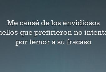 Me cansé de los envidiosos y de los que prefirieron no intentarlo por temor a su fracaso. Me cansé de aquellos que ya te lo avisaron, aquellos que ya te lo dijeron, no creo que necesites más explicación, tú ya sabes a quién me refiero.