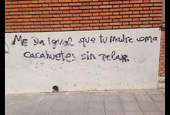 Esta pintada está en la pared de CP Javier en León y puede venir de alguna desavenencia entre alumnos.
