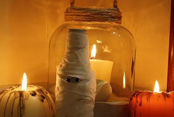 Para este reto, había pensado en reciclar una de esas botellas en un elemento decorativo para Halloween, puesto que quedan pocos días para vivir una de las noches más terroríficas y mágicas del año. Y se me ocurrió hacer una momia.